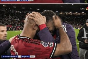 而终场哨声响起后,姆伯莫和库尼亚也激动地抱在一起,紧紧相拥庆祝胜利。
