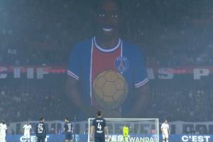 体育资讯09月28日讯 法甲第6轮巴黎vs欧塞尔开场前,球迷展示巨型TIFO,庆祝登贝莱喜提金球奖和恩里克获颁克鲁伊夫奖。