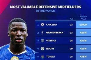 当前位置: 首页 > 资讯 > 足球资讯 > 防守型中场身价榜:凯塞多1亿欧居首,赫拉芬贝赫9000万欧