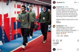 迪亚斯:这是个充满情绪的夜晚。足球总是告诉我们,最好的和最坏的事情可能在90分钟内同时发生。我对没能和我的队友们一起完成比赛感到难过。但我也对他们难以置信的努力感到骄傲。